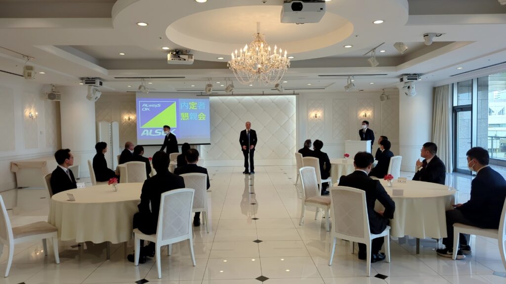 「神奈川県民共済プラザビル 5階シュノンソーにおいて、令和7年内定者懇親会を行いました。」